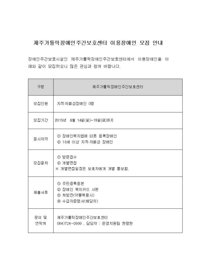 제주특별자치도 제주시 기와 5길 81, 3층(화북2동) ㅣ Tel.064)724-0999 ㅣ Fax.064)724-0998 대표자 : 문정신 ㅣ 사업자번호 : 616-82-23992 Copyright © 제주가톨릭장애인주간보호센터 All Rights Reserved.