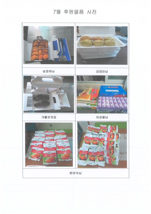 7월 후원물품입니다. 무더운 여름에 시원하게 맛있게 잘 먹었습니다.