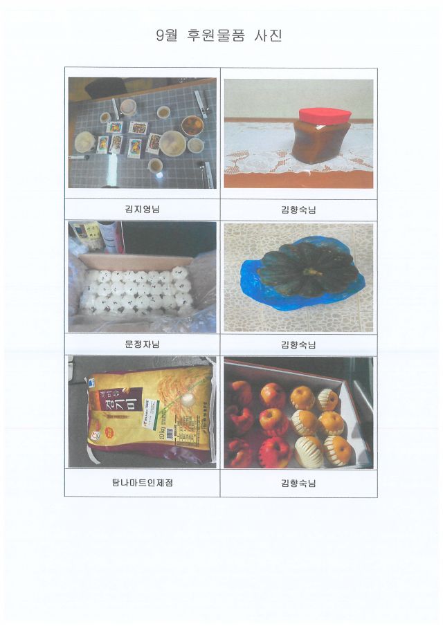 9월 후원물품 내역입니다. 항상 신경써주심에 감사드립니다.