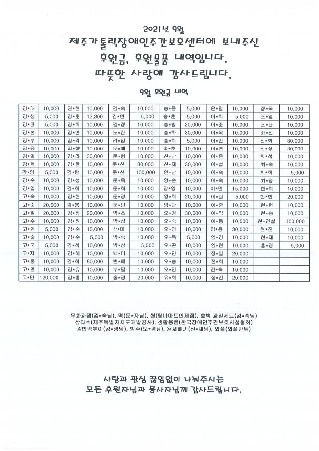 10월 후원 및 자원봉사 내역 입니다.