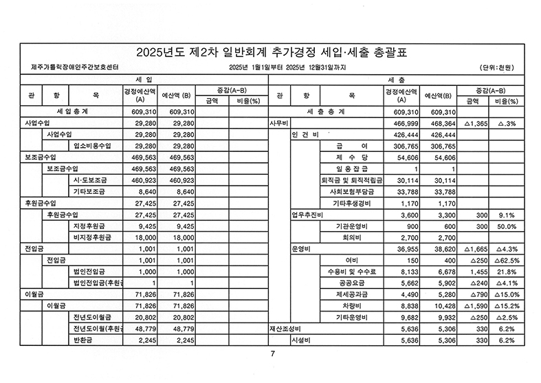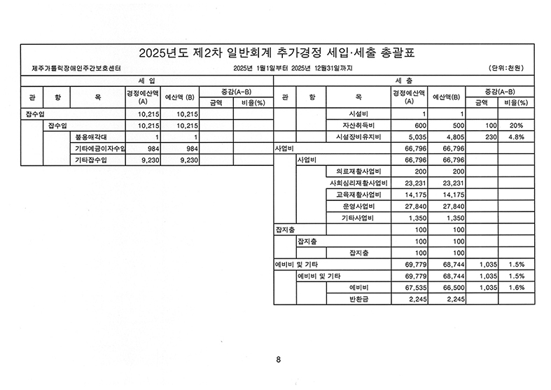 「사회복지법인 및 사회복지 시설 재무.회계규칙」제10조 제4항에 의거 2025년도 2차 추가경정예산을 공고합니다.