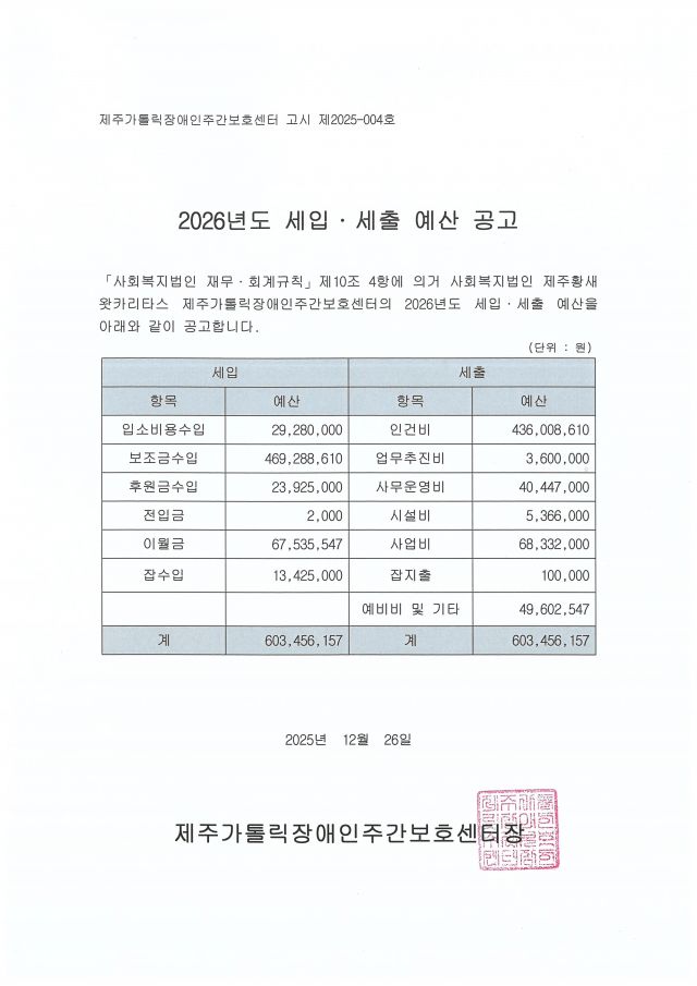 공고기간: 2025년 12월 26일 ~ 2026년 1월 18일