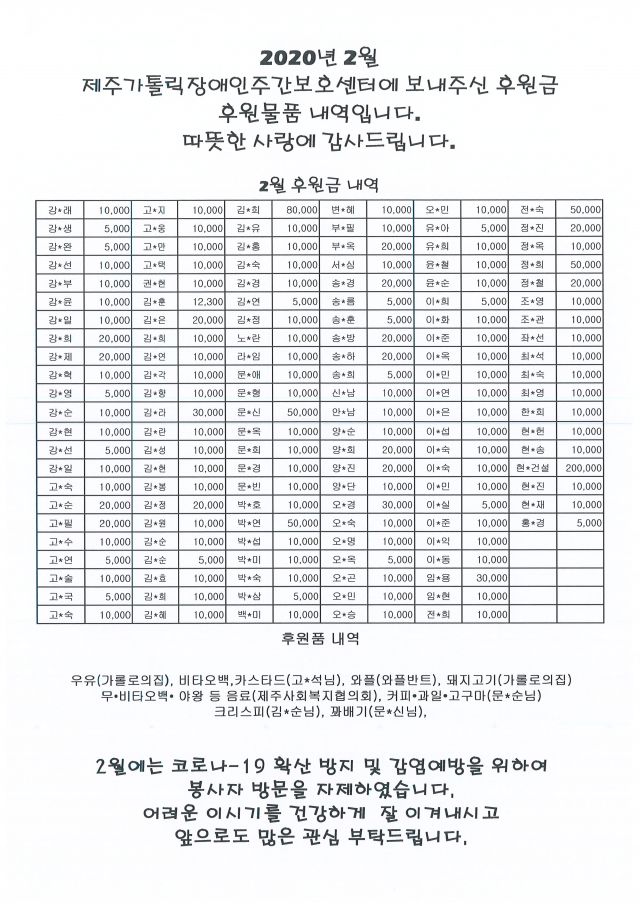 2020년 2월 후원내역입니다. 감사드립니다^^