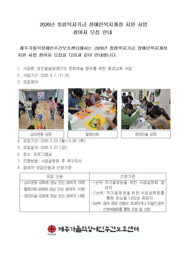 • 제목 2026년 통합복지기금 장애인복지계정 지원 사업 참여자 모집 안내