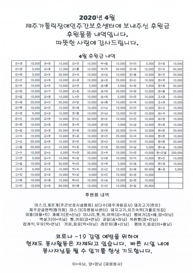 4월 후원내역입니다. 도움주시는 모든 분들께 항상 감사드립니다.^^