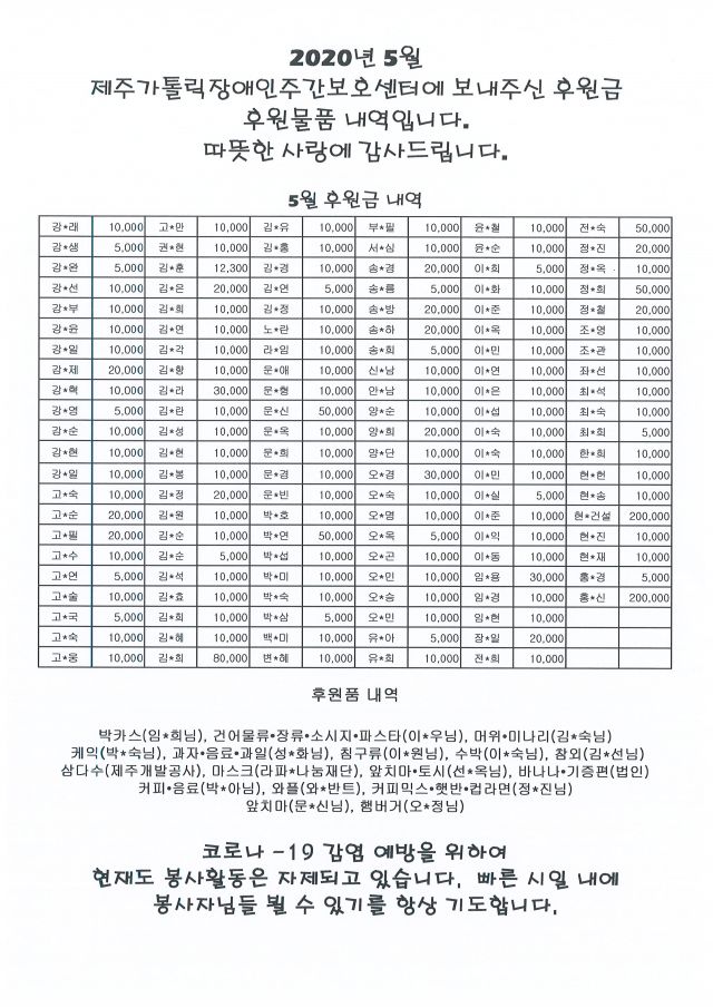 5월 후원내역입니다.