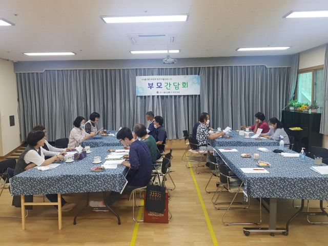 코로나 19 상황의 지속으로 이제야 기관에서 조심스럽게 첫 부모간담회를 가졌습니다.