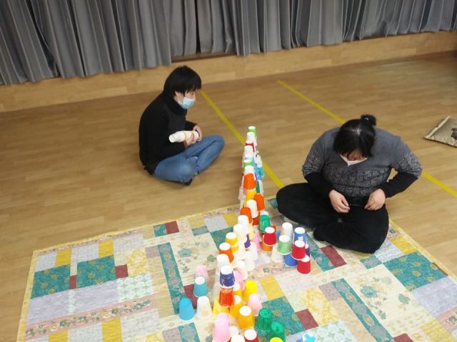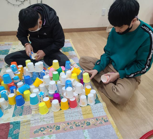 인지활동 프로그램으로 종이컵을 이용한 활동을 하였습니다.