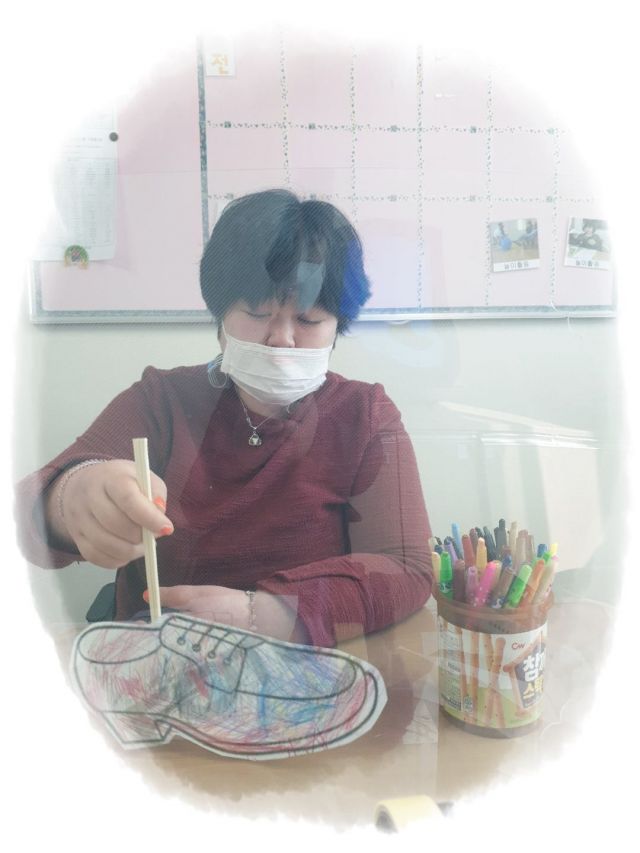 신발 꾸미기 후 대철씨처럼 신어 보구요~
