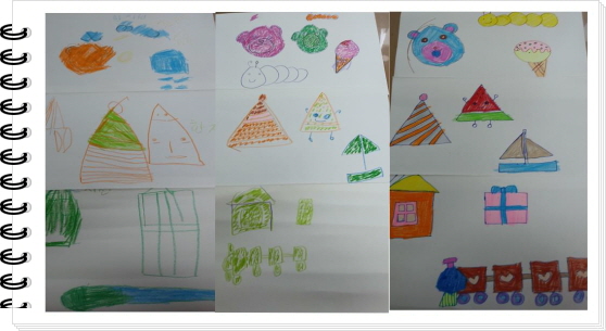 동그라미, 세모, 네모로 다양한 그림 그리기 활동을 하였습니다.