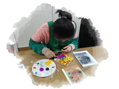 고호의 작품 중에 해바라기를 감상하고 미술표현기법을 배워