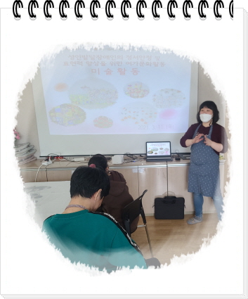 나의 모습 꾸미기 활동을 한 후 2021년 미술활동에 대한 오리엔테이션을 진행하며