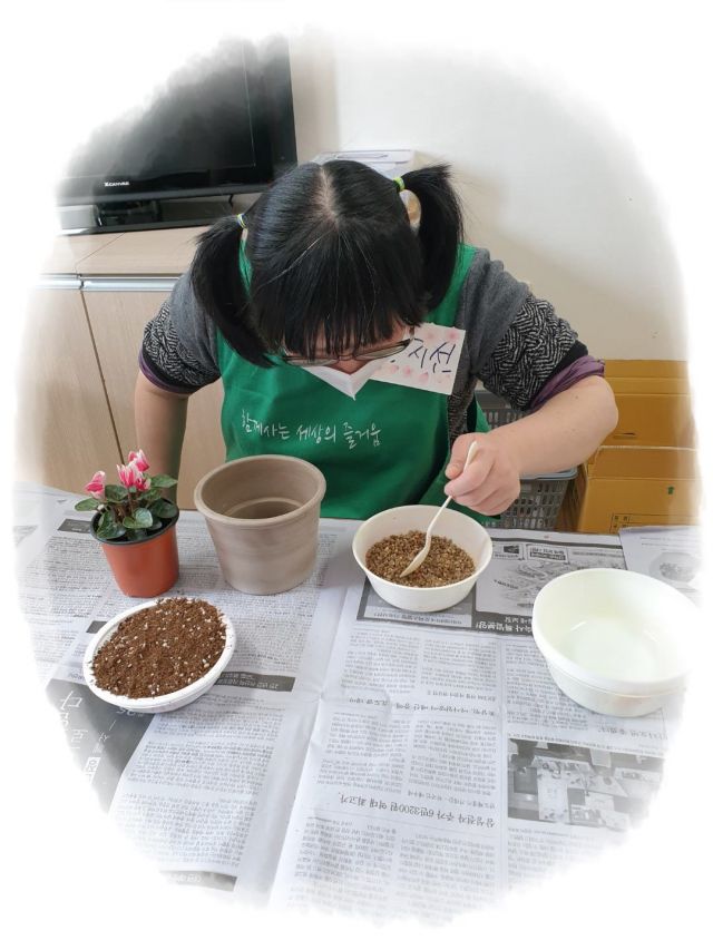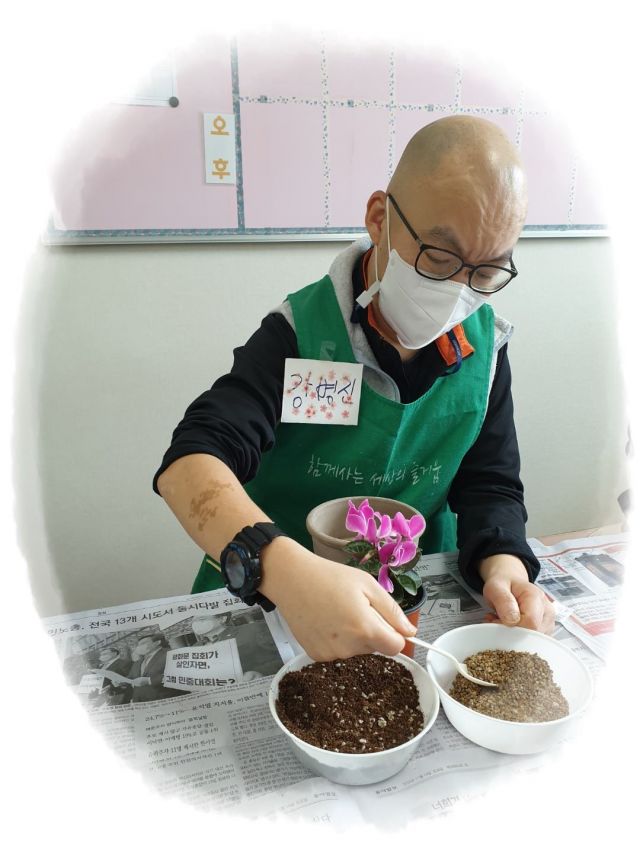 꽃중년활동 시클라멘 분화심기를 통한 마음의 안정 찾기 . . .