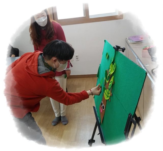 나무에 열매와 나뭇잎을 붙여 풍성하게 만드는 활동을 진행했습니다