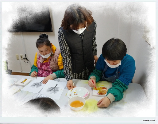 재능키움활동으로 캔퍼스에 나무를 표현하는 그림을 그렸습니다.