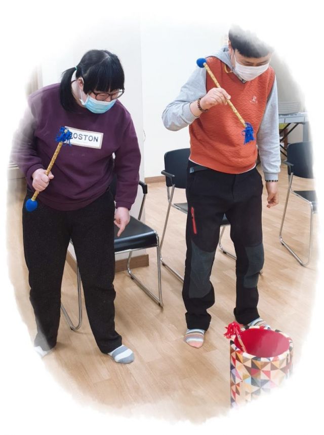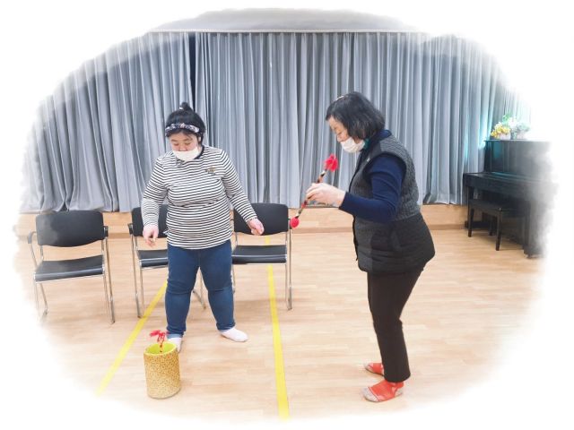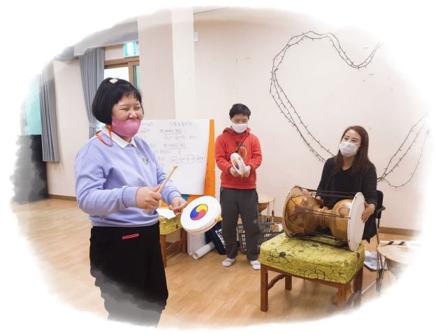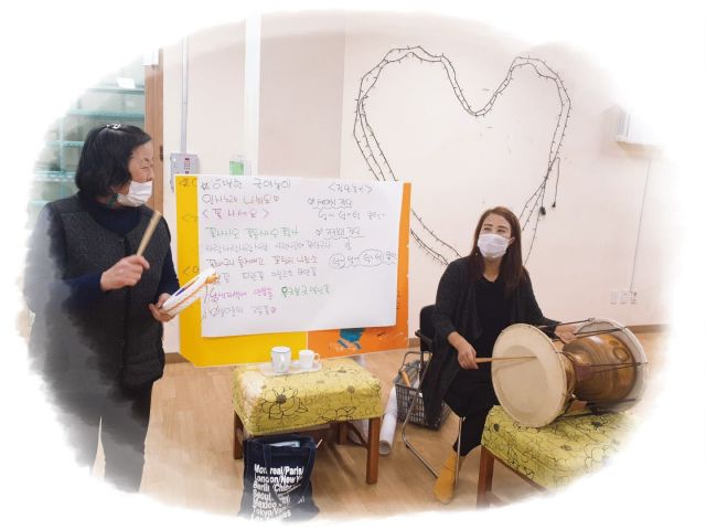 봄과 어울리는 꽃사시오~ 민요를 부르며 소고연주 활동과 투호, 윷놀이 전통놀이 체험했습니다