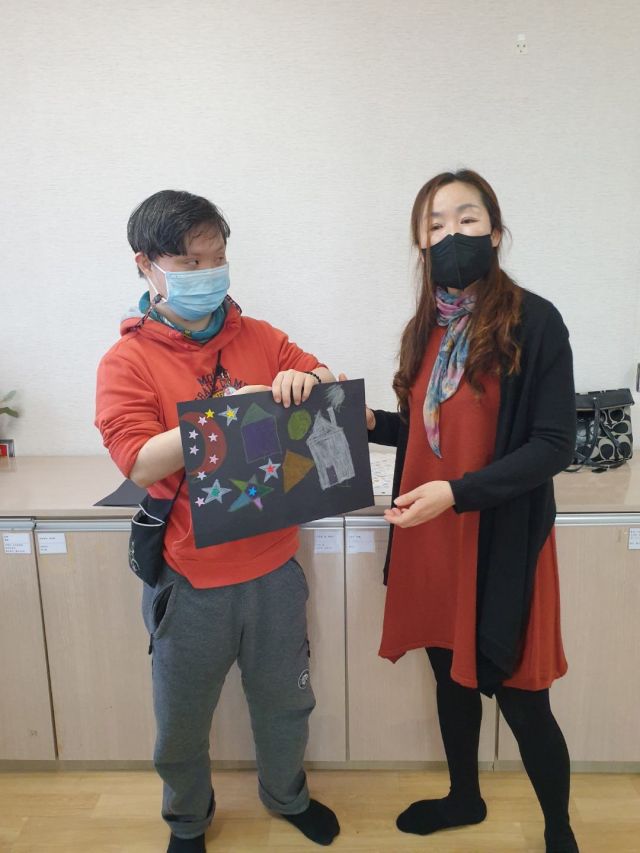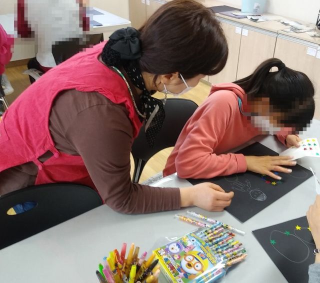 반짝이 스티커를 이용해 밤하늘 꾸미기를 진행했습니다