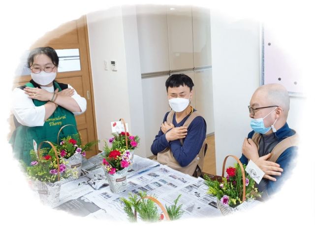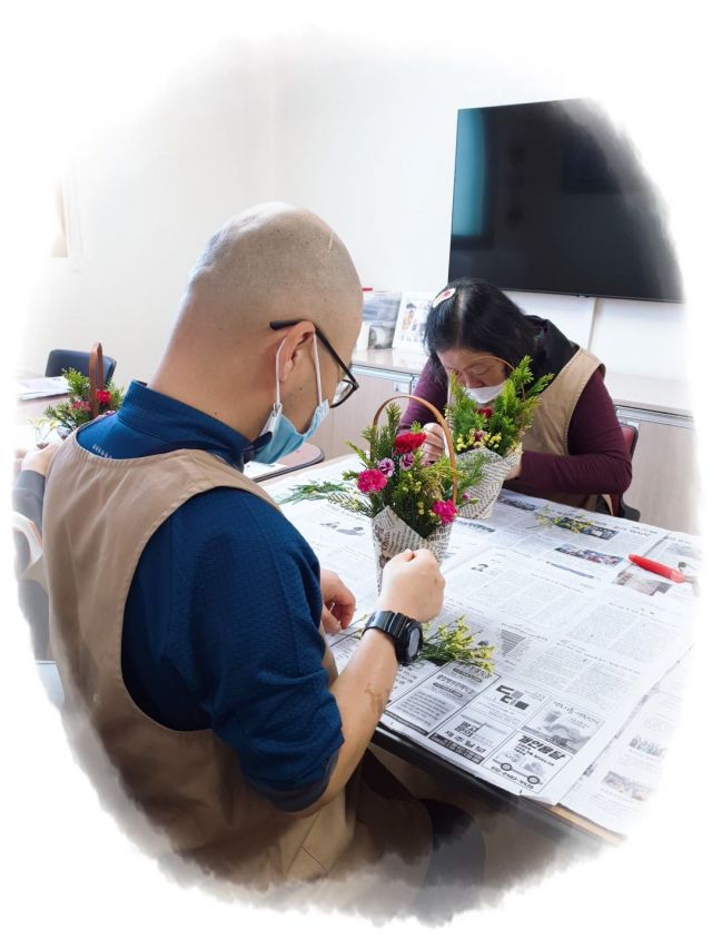 카네이션, 측백, 안개꽃 등을 이용해서 어버이날 카네이션 만들기 활동을 했답니다.