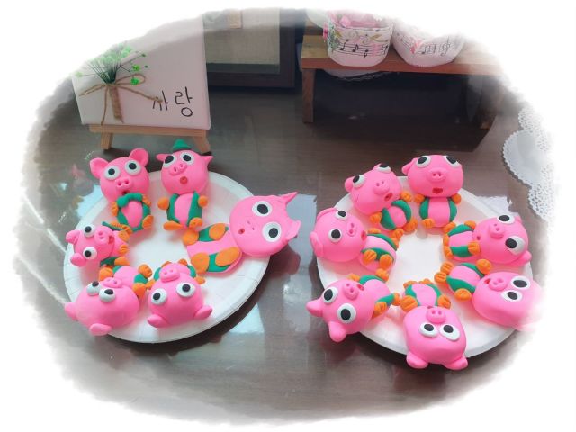 클레이로 핑크돼지 만드는 활동을 했습니다
