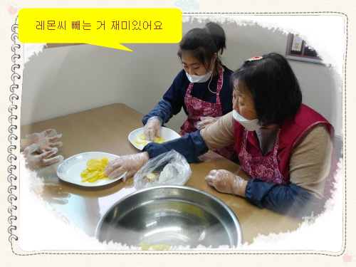 직업체험활동으로 레몬을 이용한 수제청을 만들었습니다.