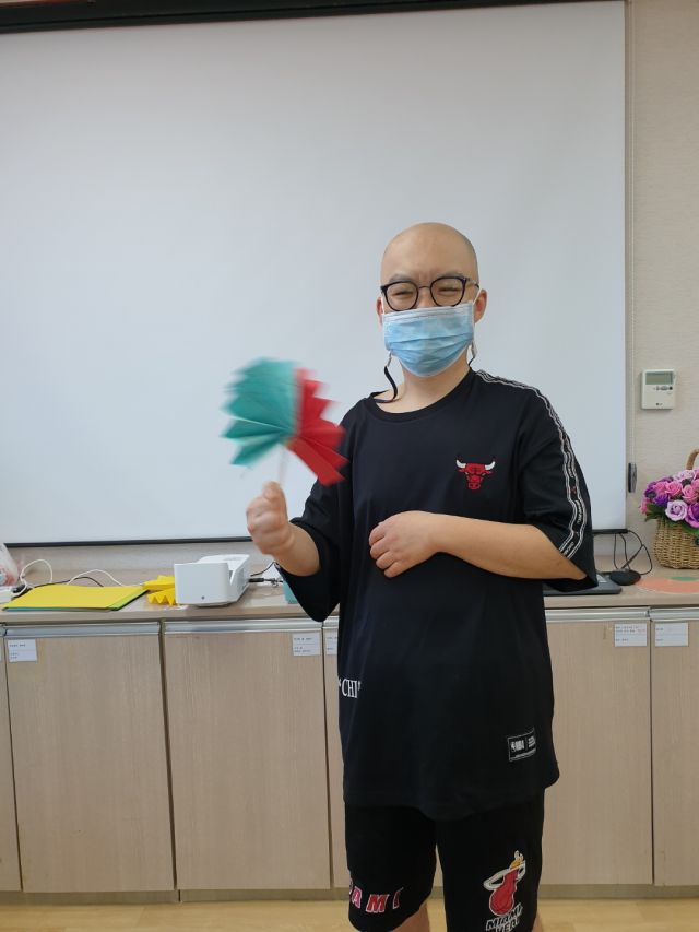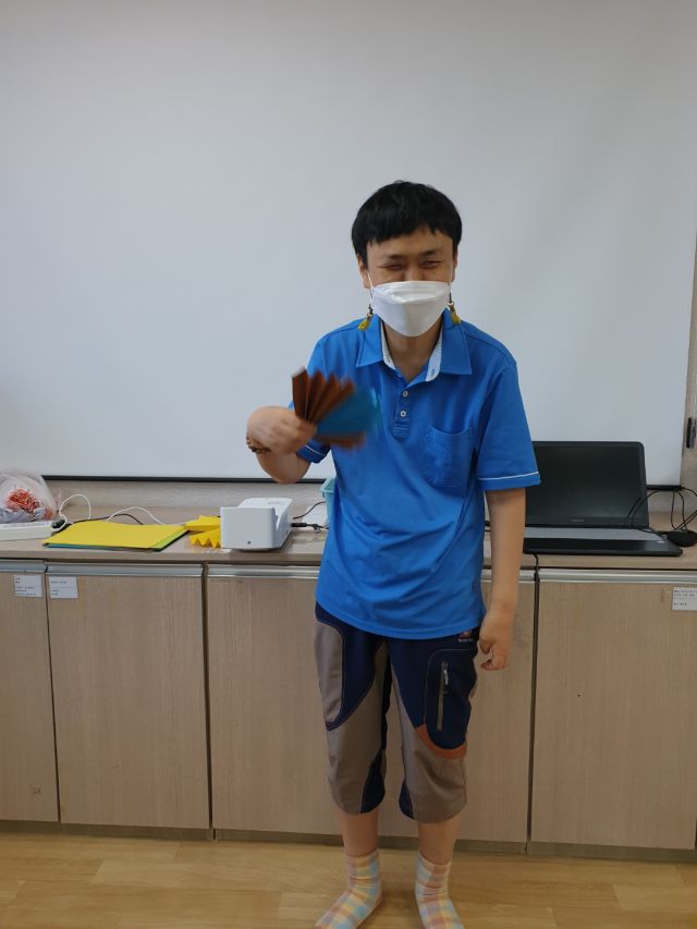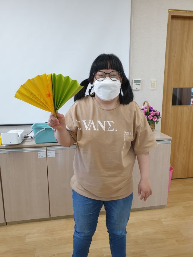 여가활동으로 다양한 색깔의 종이로 부채를 만들어 보고, 부채를 부치며 소원을 빌어보았습니다.
