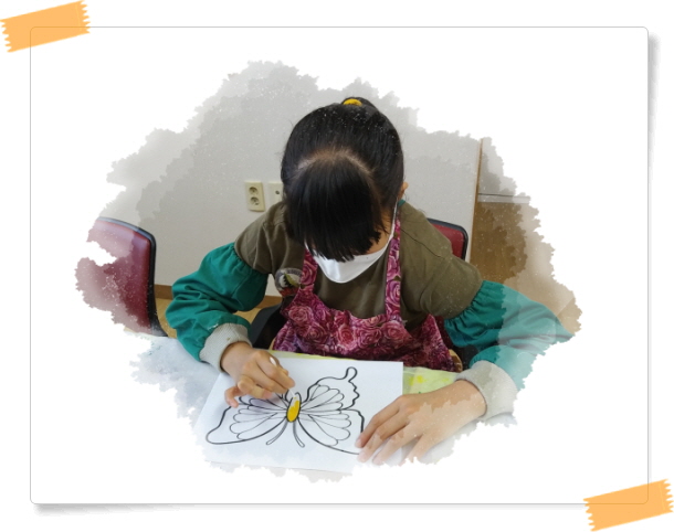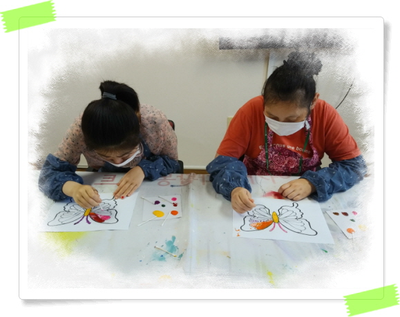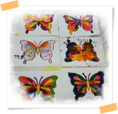 재능키움활동으로 면봉에 물감을 묻혀 콕콕 찍어 나비를 표현하였습니다.
