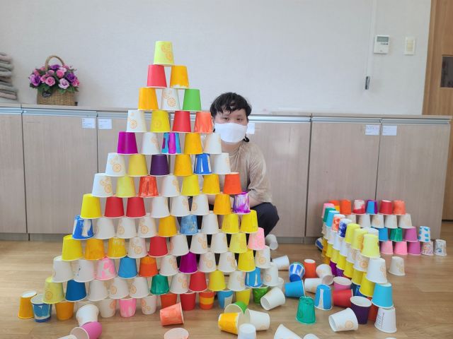 종이컵을 이용해 다양한 높이의 탑을 쌓아보았습니다.