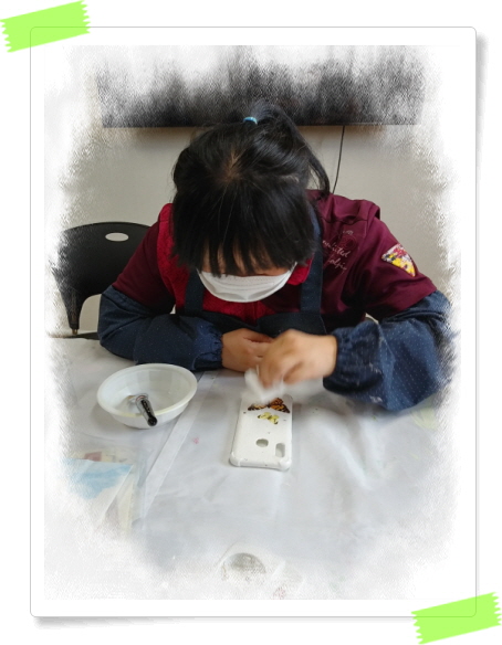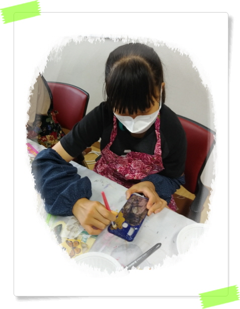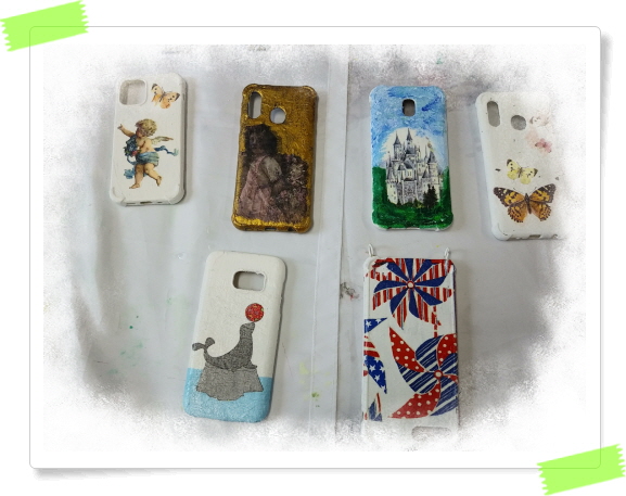 폐품공예활동으로 폐핸드폰케이스, 냅킨을 이용하여 예쁜 핸드폰케이스를 만들었습니다.