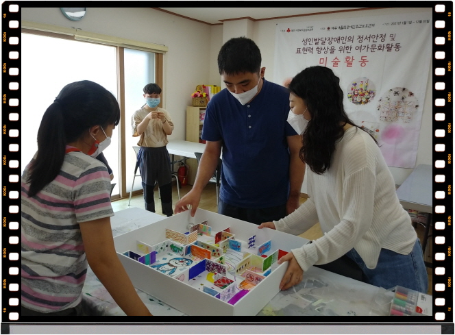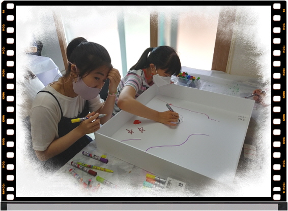 미술활동으로 커다란 미로를 만들어 놀이활동을 하였습니다.