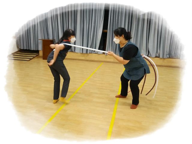 이용인과 한팀이 되어 허리를 잡는 꼬리따기는 위험할 수 있어 내용을 약~~간 변경했어요