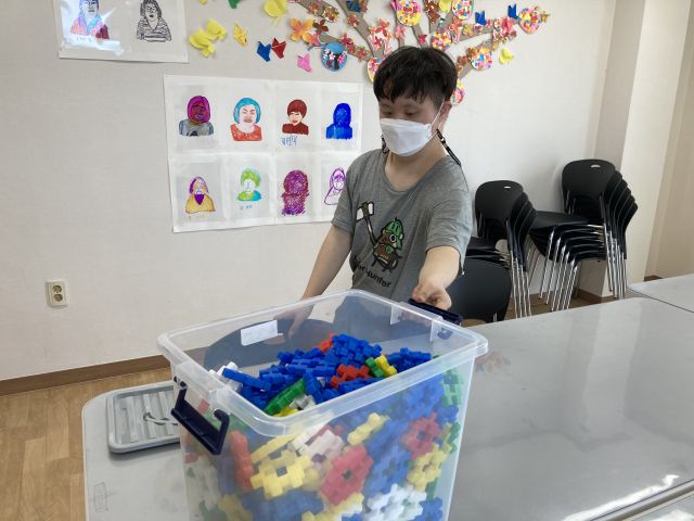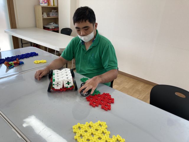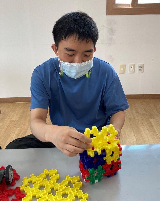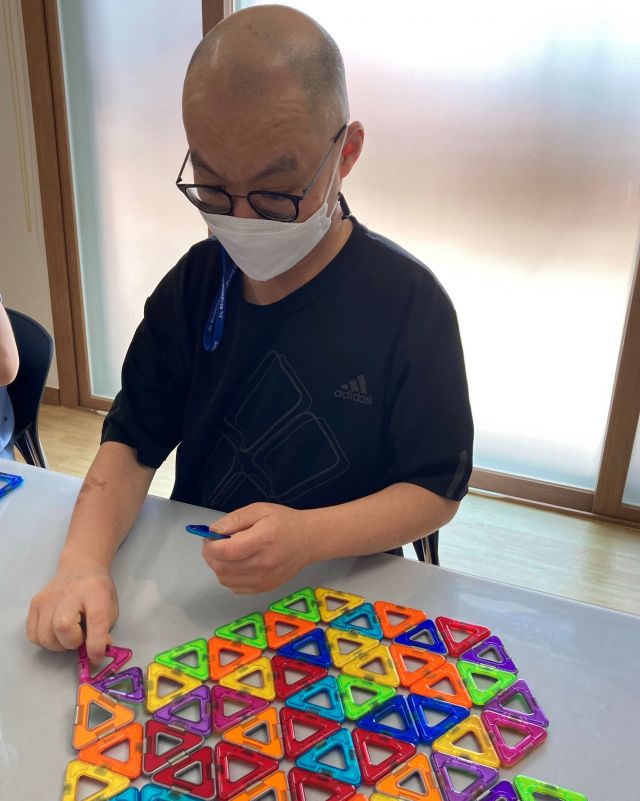 금일 오감체험활동 시간에는 맥포머스 블록과 와플블록 중 이용인분들이 원하는 블록을 이용하여 이용인분들이 만들고 싶은 모형을 만들어보는 시간을 가졌습니다.