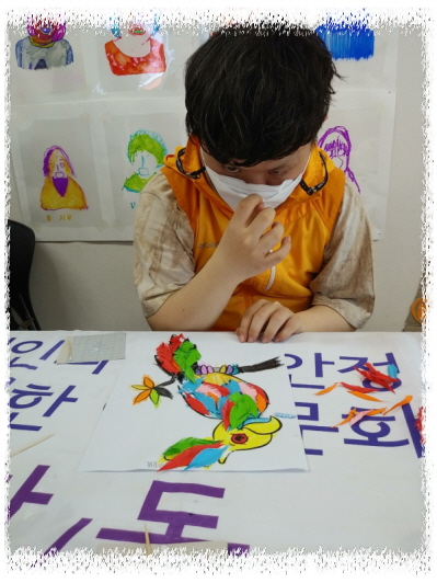 미술활동으로 알록달록 화련한 앵무새 꾸미기 활동을 하였습니다.