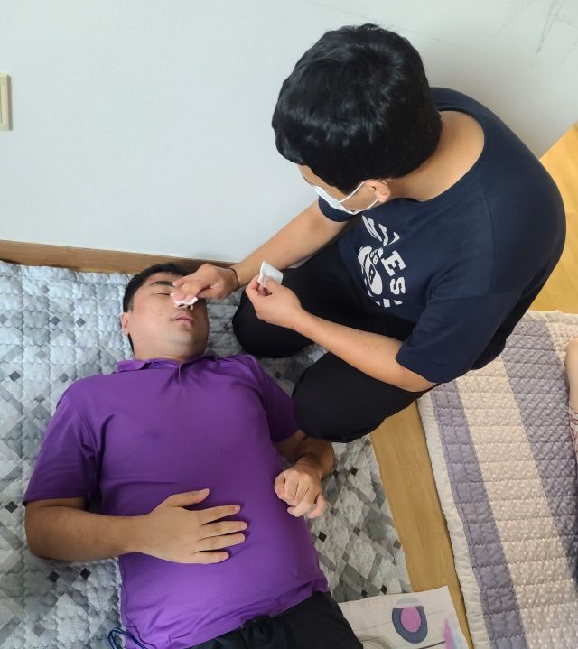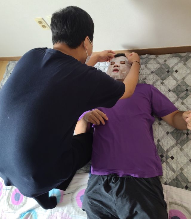 금일 스킨테라피 시간에는 스킨과 마스크팩을 이용해 피부관리하는 시간을 가졌습니다.