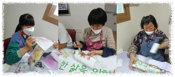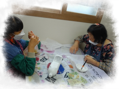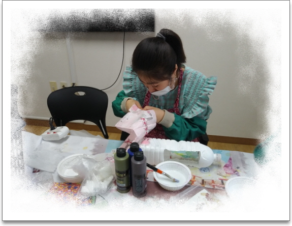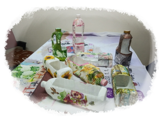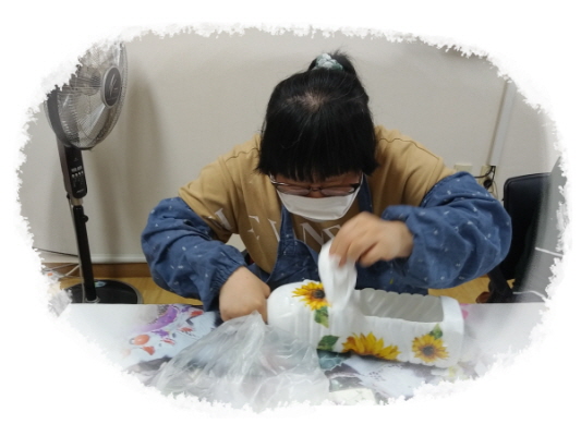 폐품공예활동으로 삼다수pt병과 우유통, 냅킨을 활용하여 화분 만들기를 하였습니다.