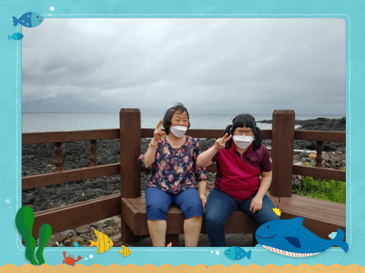 체험활동으로 조천해안도로를 드라이브도 하고 해안가 근처 정자에서 간식을 먹으며