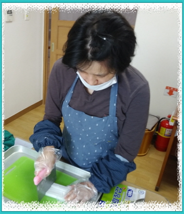 직업체험활동으로 비누베이스 썰기 연습을 하였습니다.