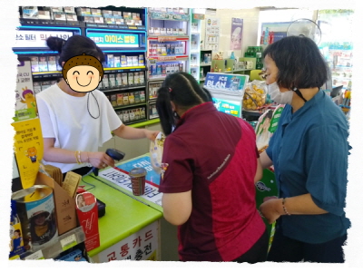 코로나격상으로 4인이상 활동금지로 2명씩 짝을 이루어 편의점 체험활동을 하였습니다.