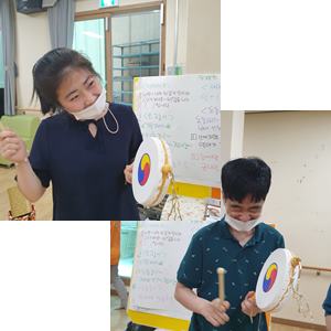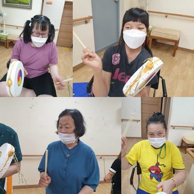 여가활동 시간에 만든 양반탈, 각시탈을 금일 전통놀이활동 시간에 활용하였습니다.