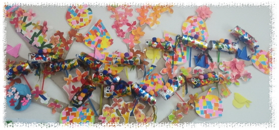 미술활동으로 쿠킹오일과 셀로판지, 도화지를 활용하여 반짝 빛이 나는 물고기를 만들어