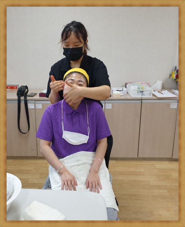 미용기초(스킨레라피) 시간, 얼굴마사지, 내 피부에 맞는 팩, 네일아트를 진행했습니다.