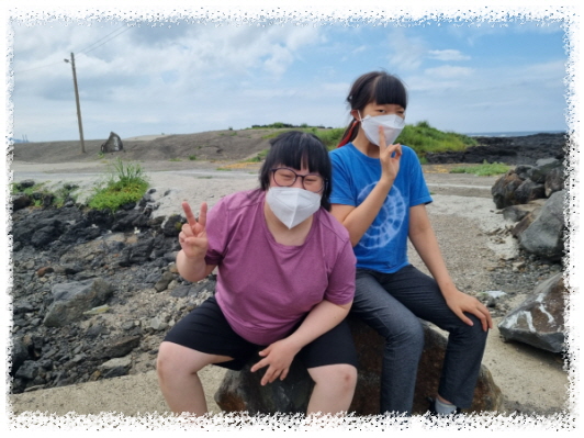 체험활동으로 조천에서 함덕해안도로 드라이브를 한 후 한적한 바닷가에 내려 풍경을 구경을 하였습니다.