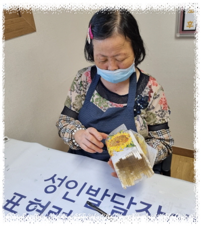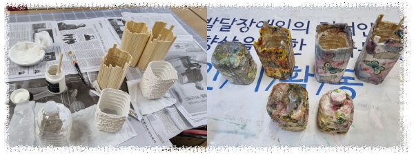 폐품공예활동으로 삼다수pt병과 일회용 나무젓가락, 모델링페이스를 활용하여 화분을 만들었습니다.
