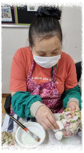 삼다수pt병에 모델링페이스를 발라 건조 후 냅킨을 찢어 붙이고 드라이로 발린 후 마감재를