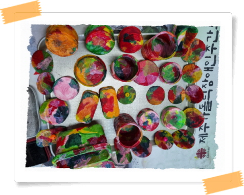 폐품공예활동으로 참치캔, 햄캔, 꽁치캔, 된장통 등을 활용하여 다용도 함을 만들어 봤습니다.