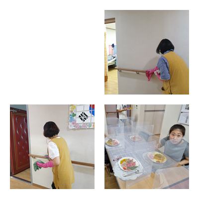 사회적거리두기 4단계 지침상 이용인 수는 정원의 50%, 우리들의 점심식사, 기관은 항상 깨끗하게 소독소독~~~