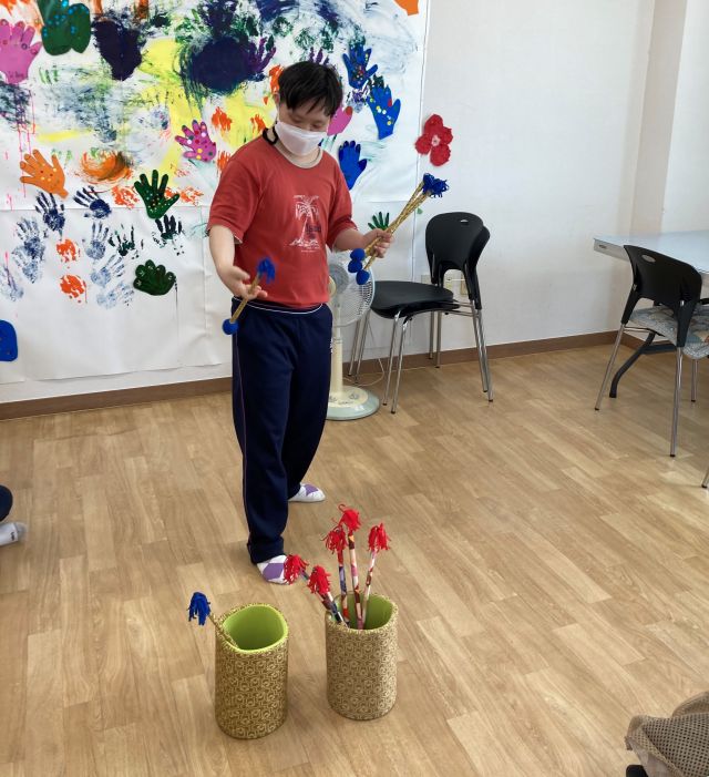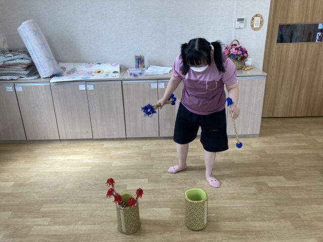 금일 전통놀이 활동 시간에는 이용인분들이 윷놀이판을 꾸며보았습니다. 꾸민 윷놀이판을 이용하여 윷놀이를 해보았습니다. 투호놀이도 가까이서도 던져보고 멀리서도 던져보는 시간을 가졌습니다~