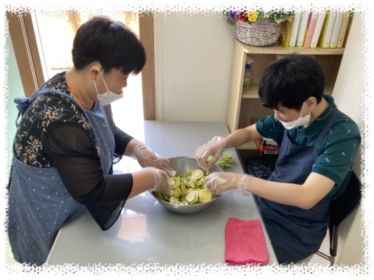 섞고 담는 활동은 이용인 혼자 스스로 할 수 있도록 지원하고 완성하였습니다.