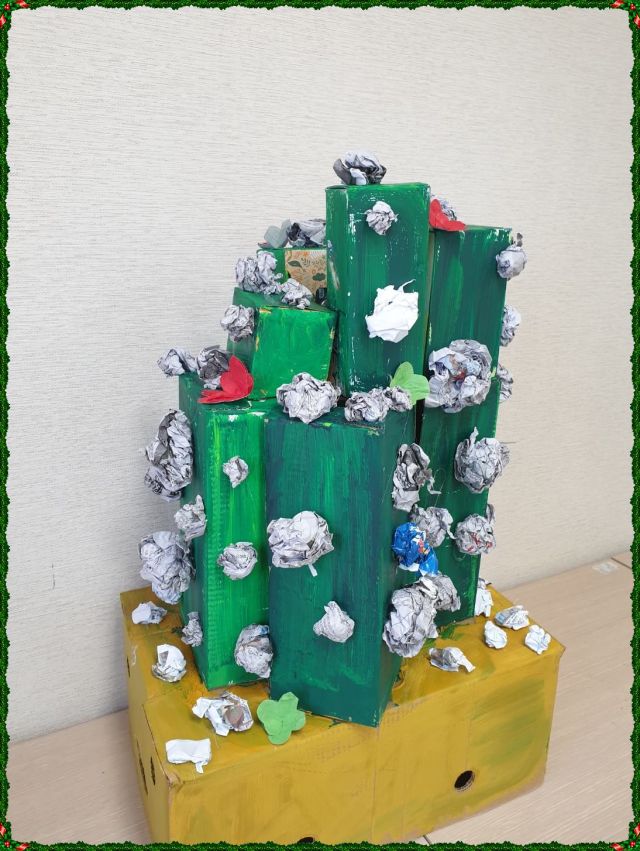박스와 신문지 폐자원을 활용하여 선인장 꾸미기했습니다.