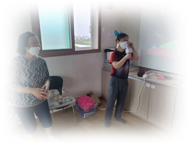 이용인 개개인별 자신만에 방식으로 노래를 부르며 즐거운 시간을 보냈습니다.
