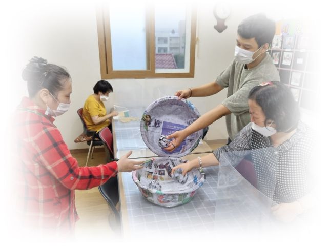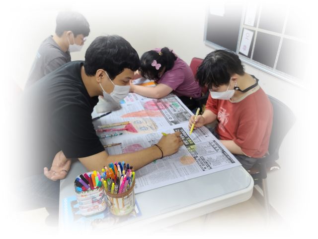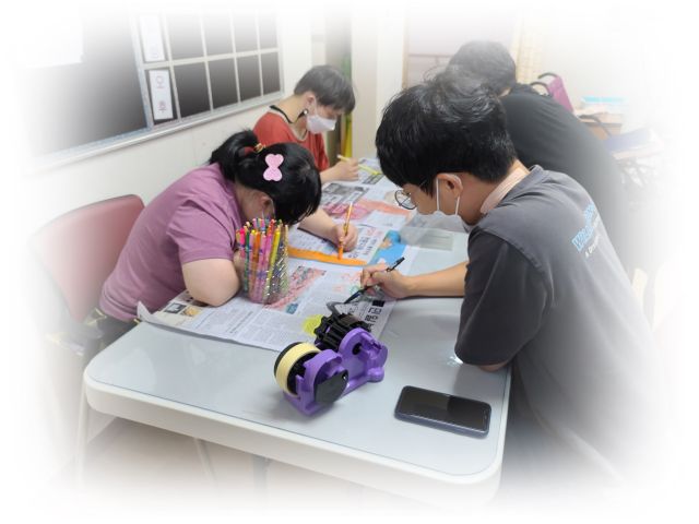 금일 점심시간을 이용하여 신문지에 그림을 그려 박꾸미기를 하였습니다.